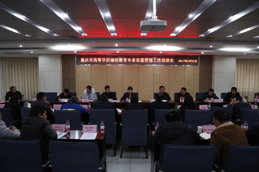2月23日下午,重庆市高等学历继续教育专业设置管理工作培训会在太阳集团2138举行。市教委高教处吴岚副处长和全市高校2138cn太阳集团古天乐负责人共计约100人参会。市教委招考处相关负责同志参加了会议。