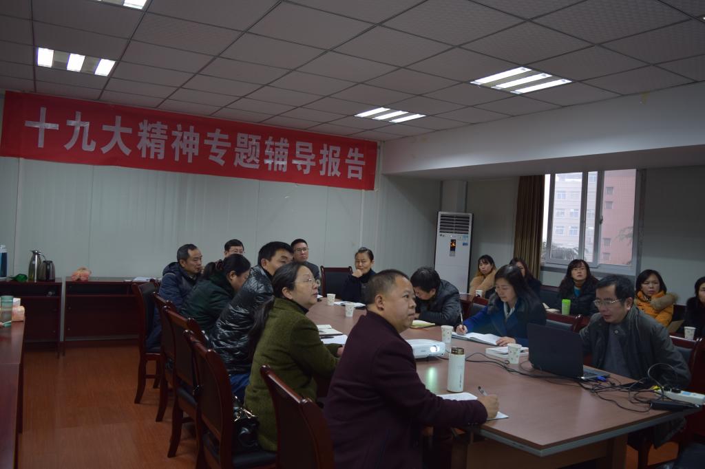 为深入学习贯彻党的十九大精神以及习近平新时代中国特色社会主义思想, 2017年12月21日上午,赵骅副校长在2138cn太阳集团古天乐会议室,为2138cn太阳集团古天乐全体教职员工宣讲十九大精神。