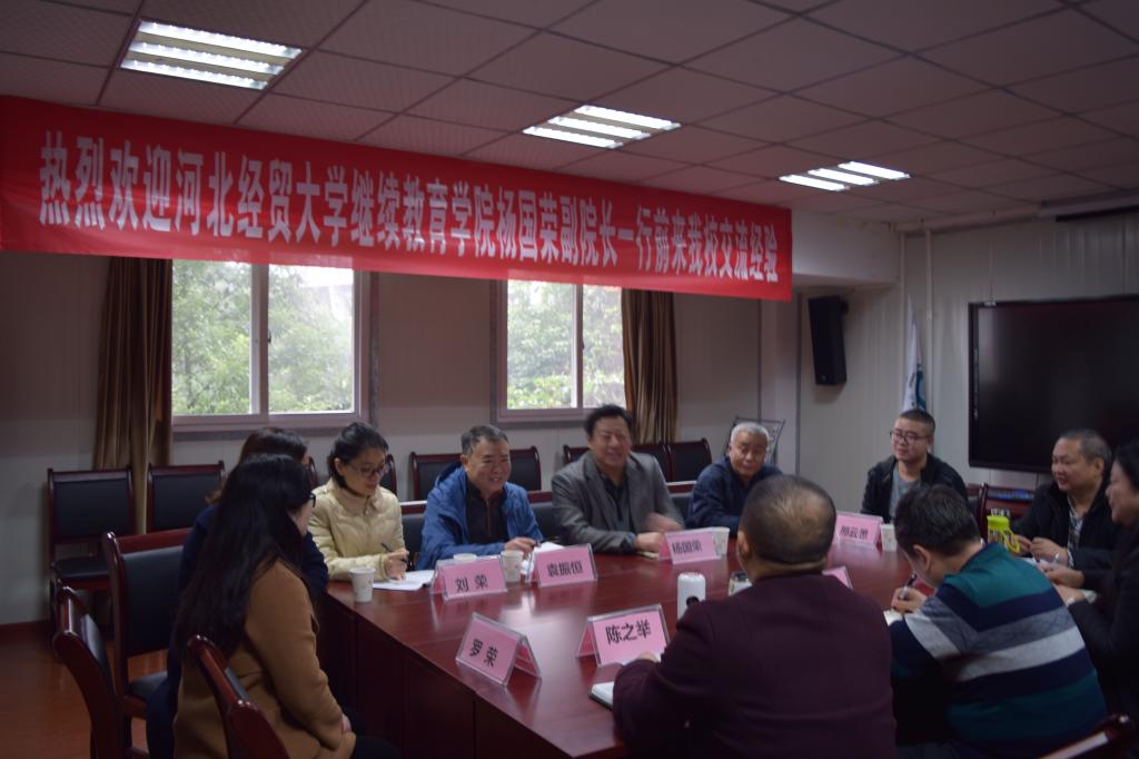 2018年11月27日上午,河北经贸大学2138cn太阳集团古天乐杨国荣副院长一行到我校进行交流、调研。我校2138cn太阳集团古天乐胥江河院长、综合办陈之举主任、自考办张译丹主任等参加了会议,会议在南岸校区学院会议室举行,由综合办陈之举主任主持。