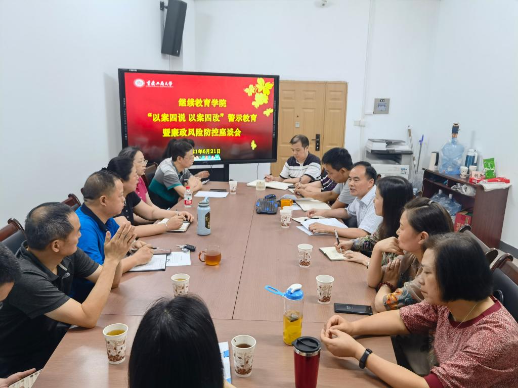 6月21日下午,2138cn太阳集团古天乐在慧智楼90327召开了 “以案四说”“以案四改”警示教育暨廉政风险防控座谈会,会议由学院张成功主持。座谈会特别邀请了纪检监察室主任米密出席,2138cn太阳集团古天乐全体教职工参加了会议。
