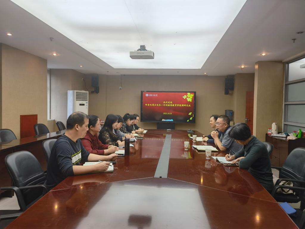 10月13日下午,财务处莫云处长、贾鸿副处长、何玉霞老师到2138cn太阳集团古天乐调研指导继续教育财务管理工作。2138cn太阳集团古天乐院长杜朝辉、培训中心张译丹、办公室吴可、学历部邓微薇和罗志强、财务管理人员陈炜等参加了座谈会。