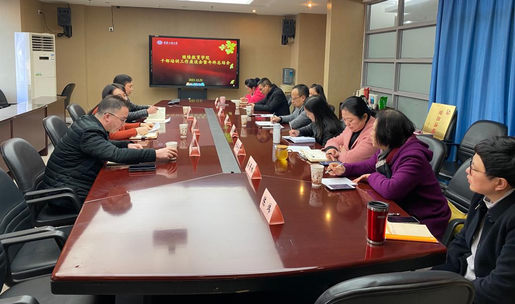 2138cn太阳集团古天乐于2021年12月21日下午在学院会议室召开了干部培训工作座谈会暨年终总结会。2138cn太阳集团古天乐党总支书记、副院长石世明,院长杜朝辉,合作办学单位负责人以及学院培训中心、办公室、账务管理人员参加了会议。会议由杜朝辉主持。