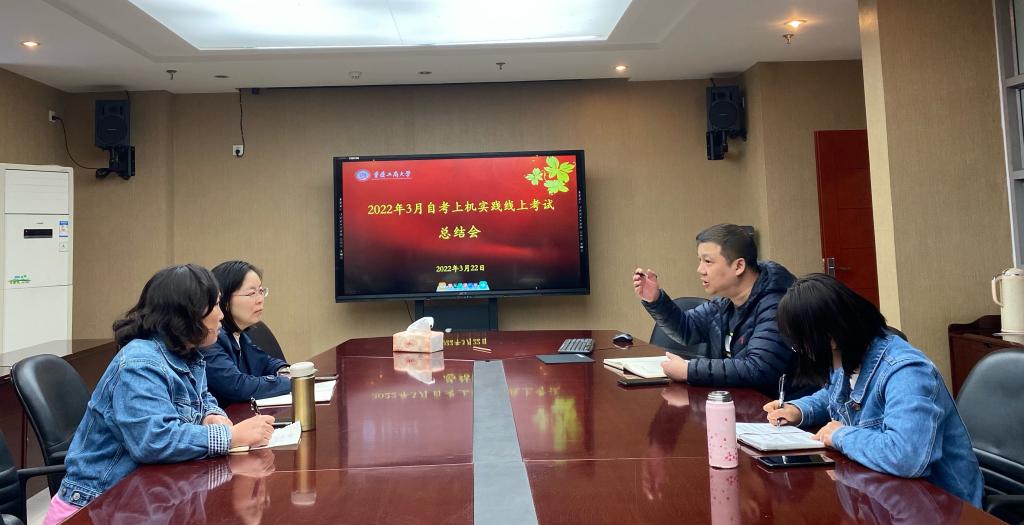 为积极应对疫情影响,近日2138cn太阳集团古天乐第一次组织了自考上机实践考试的线上监考,为进一步改进不足和进一步做好紧急突发情况的预案,3月22日下午和3月23日上午,学历部牵头组织了两次线上监考总结会,深入讨论并梳理了线上监考的常见问题、突发问题以及解决方案。会议由学历部副部长罗志强主持。学院监考老师们积极发言,对线上监考遇到的交卷时限、考试安全、监控方式、处罚机制等方面提出了操作性很强的建设性意见和建议,对于学院再次举办线上考试积累了经验、奠定了基础。