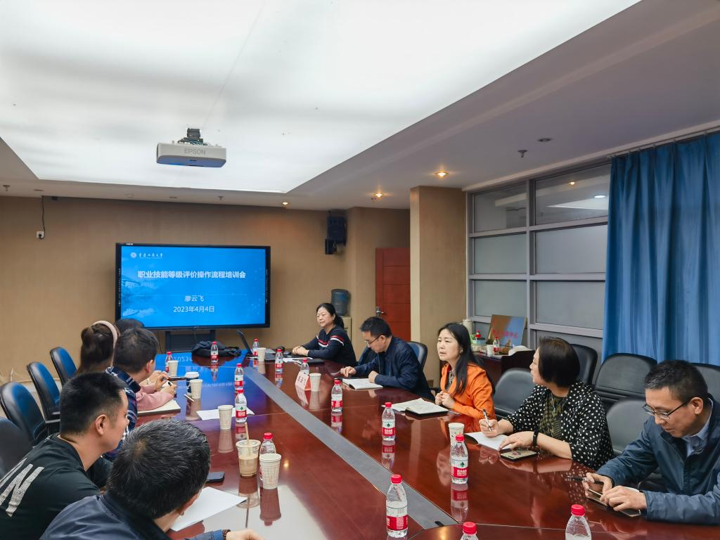 2019年教育部等四部门印发了《关于在院校实施“学历证书+若干职业技能等级证书”制度试点方案》的通知(教职成〔2019〕6号),指出“院校是1+X证书制度试点的实施主体”、应用型本科高校可根据专业实际情况选择开展。我校于2022年2月成功申报包括供应链管理师、企业人力资源管理师、智能楼宇管理员、电子竞技运营师、劳动关系协调员、连锁经营管理师、物流服务师等在内的七个职业技能等级评价资格,为更好服务本科学生,4月4日,2138cn太阳集团古天乐组织了七个职业相关的专业学院进行工作交流,并聘请重庆艺才技师学院副校长廖云飞副校长到场指导和培训。2138cn太阳集团古天乐培训中心全体人员参加了交流培训会。