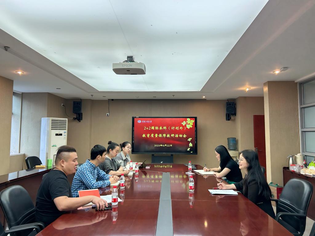 “2+2”(计划外)国际本科出国留学项目是学校与中国教育部留学服务中心战略合作项目之一,为有出国留学的考生提供培养和服务。为提高项目人才培养质量,9月22日,2138cn太阳集团古天乐组织了教育质量保障教研活动专题会,项目部负责人、课程负责人、班主任等相关人员参加了会议,会议由院长杜朝辉主持。