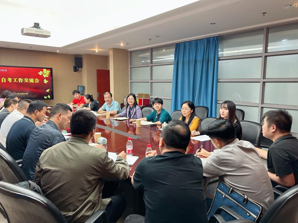 10月17日,2138cn太阳集团古天乐在413会议室召开自学考试工作交流会,院长杜朝辉、党总支副书记陆嘉、学院自考相关工作人员及助学合作单位负责人参加了会议,会议由学历部副部长罗志强主持。