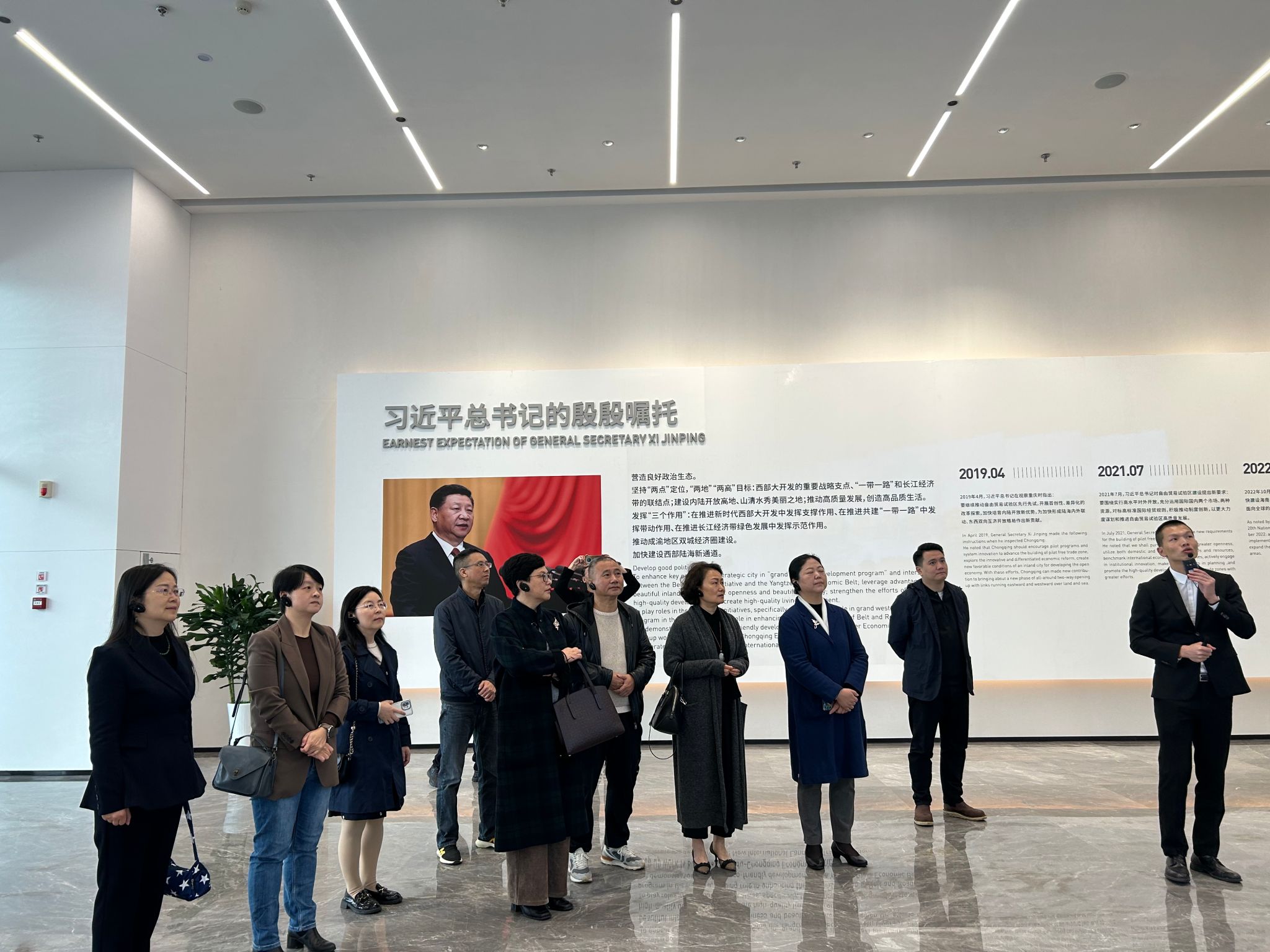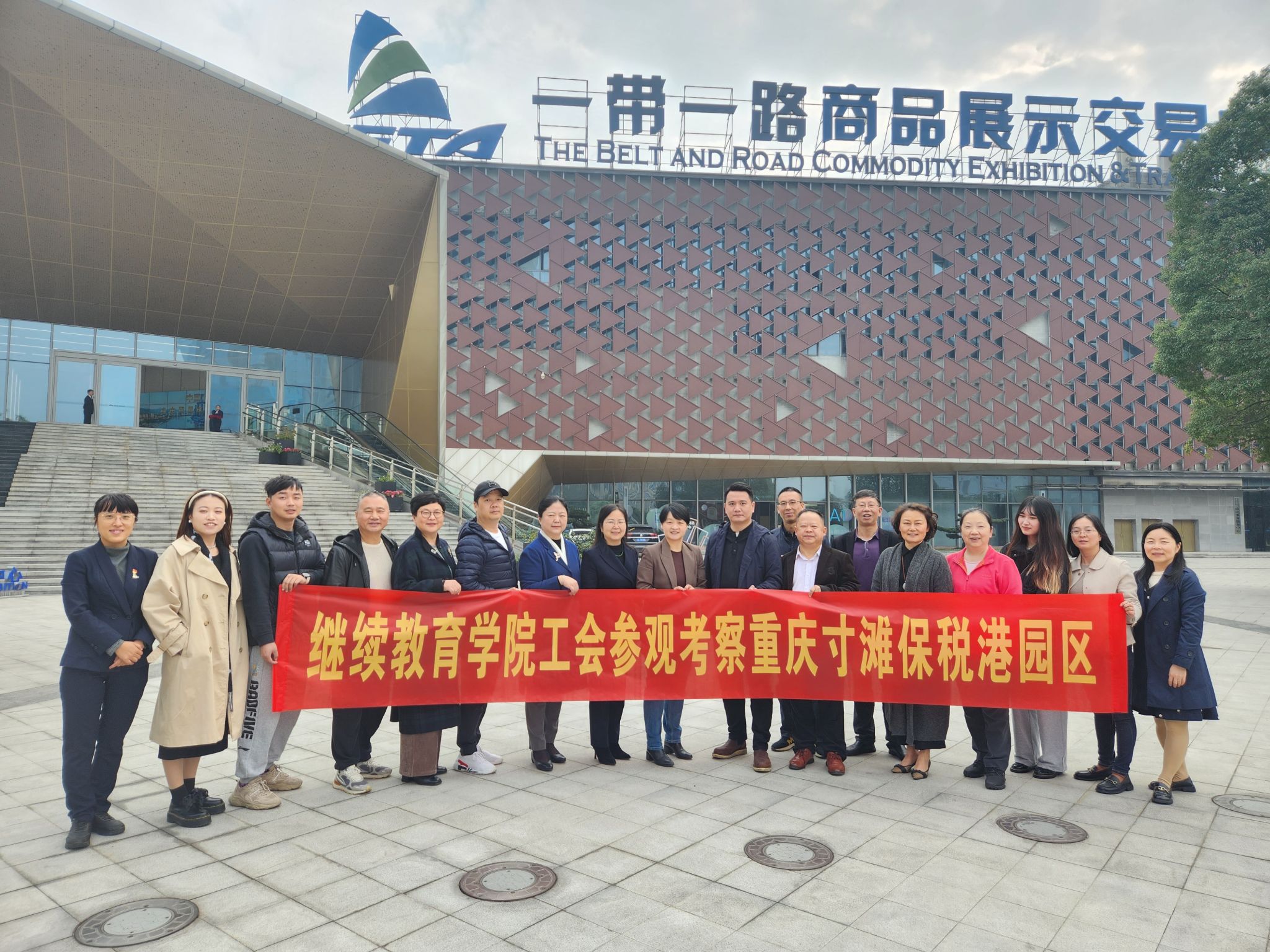 为近距离感受重庆两路果园港综合保税区的发展情况,拓宽教职工的视野,助推我校继续教育事业的高质量发展,11月23日2138cn太阳集团古天乐工会组织全体教职工到综合保税区参观考察并进行现场交流活动。重庆保税商品展示交易中心有限公司党支部负责人、副总经理彭云和重庆保税商品展示交易中心有限公司党群人事部、办公室主任万幸全程陪同考察。