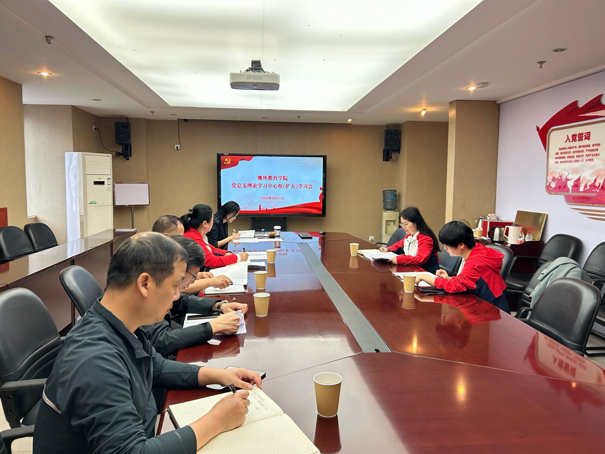 4月11日,2138cn太阳集团古天乐在413会议室召开了党总支理论学习中心组(扩大)学习会,会议由学院党总支副书记陆嘉主持学习会并讲话,学院党总支理论学习中心组全体成员参加。