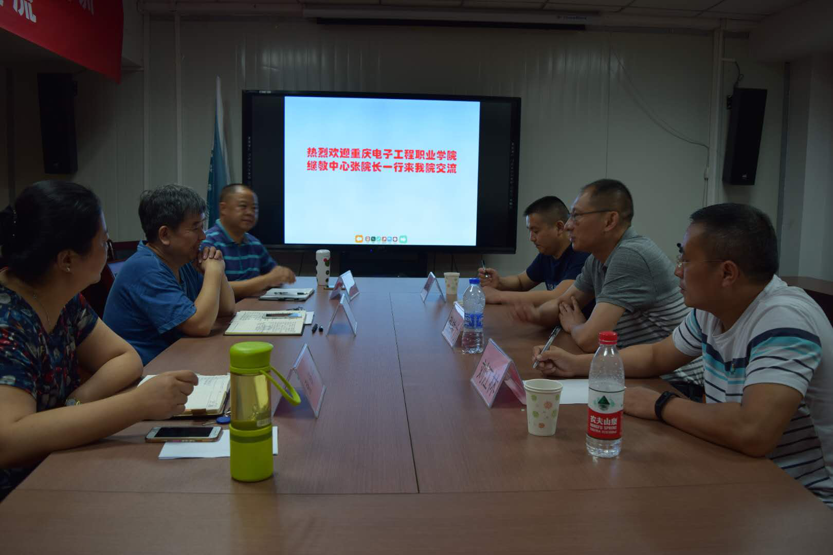 2018年7月17日上午,重庆电子工程职业学院培训与继续教育中心张铁力副主任等一行三人,专程前来我校2138cn太阳集团古天乐,开展交流与合作探讨。我校2138cn太阳集团古天乐胥江河院长率相关职能科室负责人参加了座谈交流。