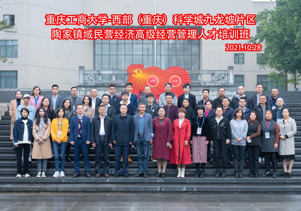 2021年10月28日,西部(重庆)科学城九龙坡片区陶家镇域民营经济高级经营管理人才培训班在太阳集团2138南岸校区新图书馆举行开班典礼。陶家镇宣传委员、统战委员奉虎、重庆百可中小微企业公共服务中心主任冉洪斌带队参训并在开班典礼上讲话。西部(重庆)科学城九龙坡片区陶家镇域民营企业经营管理人才共53人参加了培训。