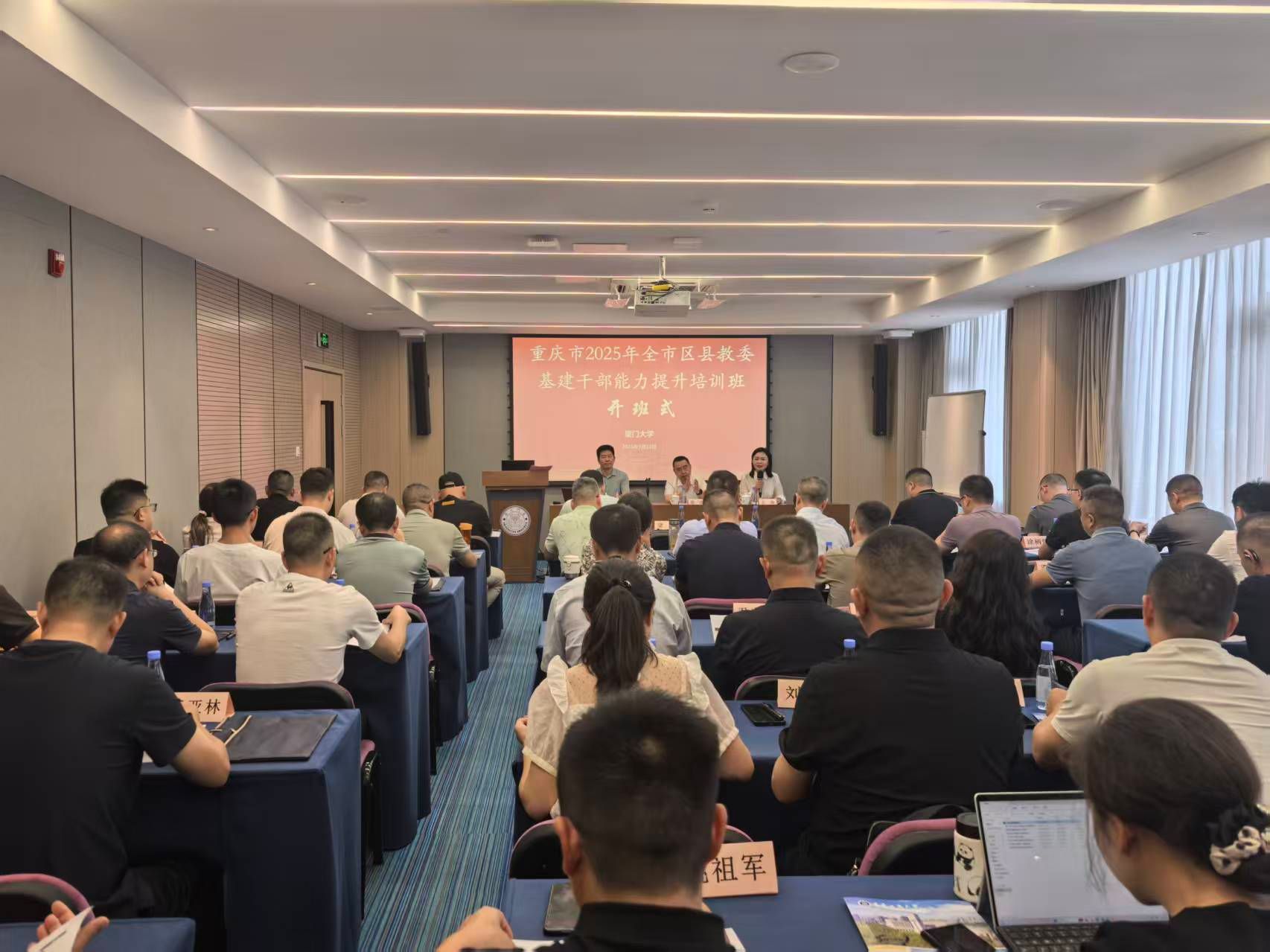 9月22日-26日,我校举办的2025年重庆市区县教委培训班顺利完成。本次培训班由重庆市委教育工委、重庆市教委主办,太阳集团2138承办、厦门大学协办。来自全市41个区县教委基建干部共计50名学员参加培训。重庆市教育委员会基建后勤处处长梁杰、2138cn太阳集团古天乐院长王燕、中国教育发展战略学会产教融合专业委员会副理事长、厦门大学原2138cn太阳集团古天乐院长许和山出席开班式并讲话。
