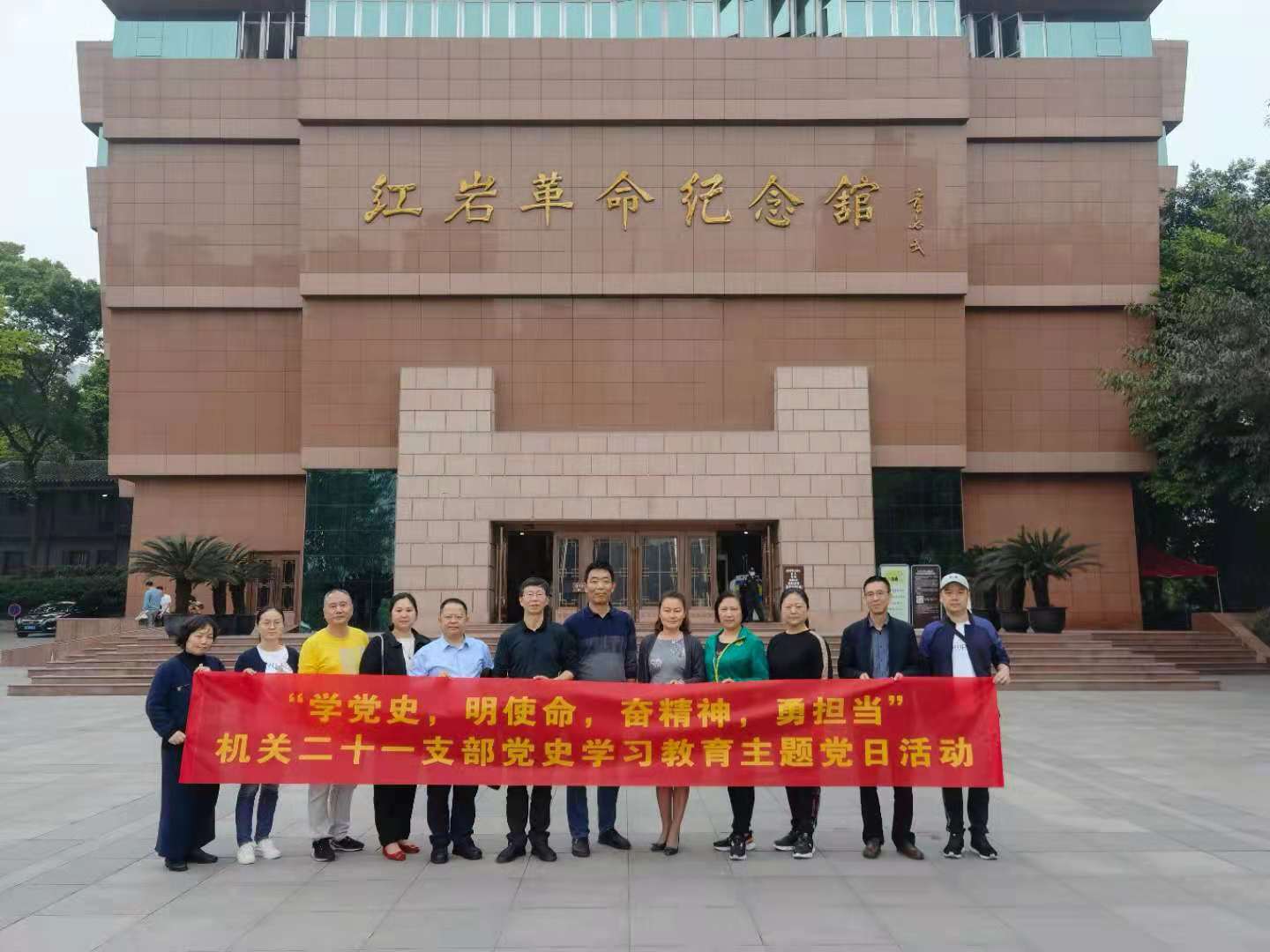 为更好的贯彻党中央、市教育工委、学校党委及机关党委关于党史学习教育的相关文件精神和要求,进一步深化党史学习教育,传承红色基因,学史明理,学史践行,4月23日,机关第二十一支部全体党员前往红岩革命纪念馆开展了党史学习教育主题党日活动。