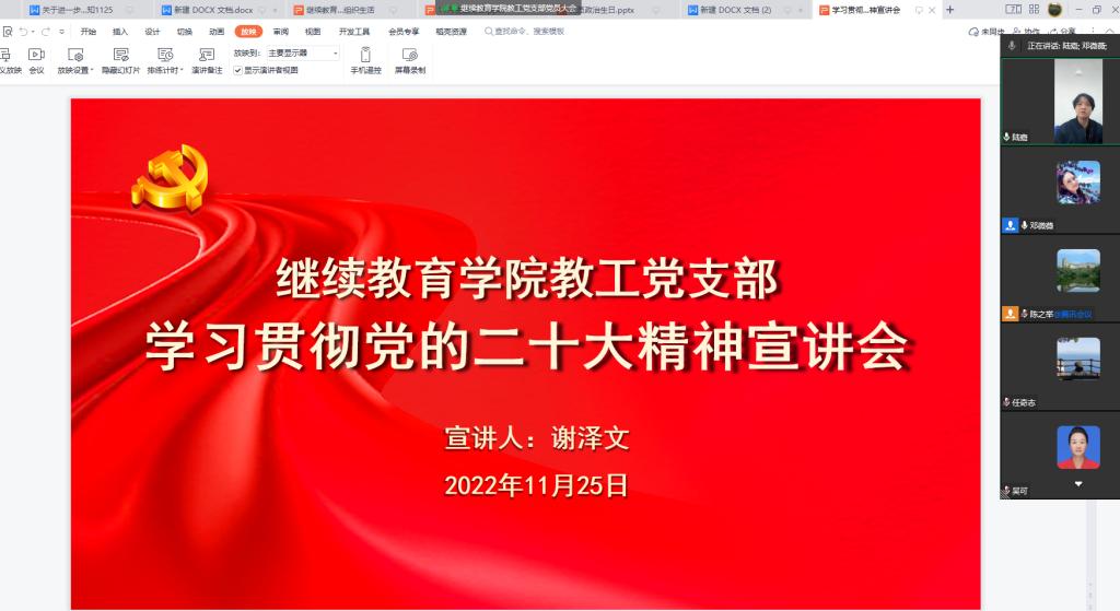 11月25日,因疫情影响,2138cn太阳集团古天乐党总支全体党员相聚云端,线上开展学习贯彻党的二十大精神宣讲活动。