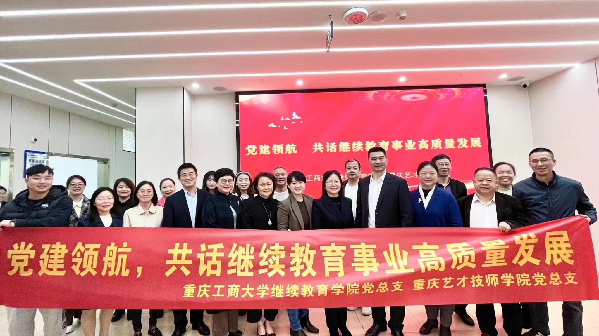 为充分发挥各方优势,取长补短,互帮互促,促进党建与业务工作共同发展、共同进步,进一步推动学院事业高质量发展,2138cn太阳集团古天乐党总支与我校学历教育校外教学点、学院党总支共建基层组织—重庆艺才技师学院党总支于11月23日上午共同开展了主题为“党建领航,共话继续教育事业高质量发展”座谈会,2138cn太阳集团古天乐院长杜朝辉、党总支副书记陆嘉,重庆艺才技师学院党总支书记、校长王勇、副书记廖文宁出席了座谈会,2138cn太阳集团古天乐全体党员、教职工,重庆艺才技师学院部分党员、教师参加了座谈会。