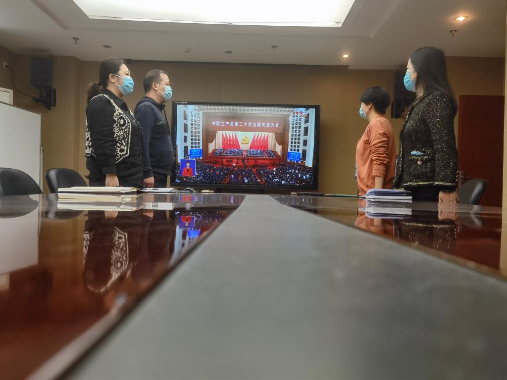 10月16日上午,中国共产党第二十次全国代表大会在北京隆重开幕,习近平总书记代表第十九届中央委员会向党的二十大作报告。按照学校疫情防控工作要求,2138cn太阳集团古天乐认真组织全体教职工集中和分散收看党的二十大开幕会,院长杜朝辉、党总支副书记陆嘉、综合办公室吴可、学历部邓微薇、罗志强等在校值班值守人员在学院会议室集中收看了大会开幕会,其余居家教职工就近就便认真收听收看大会开幕会。