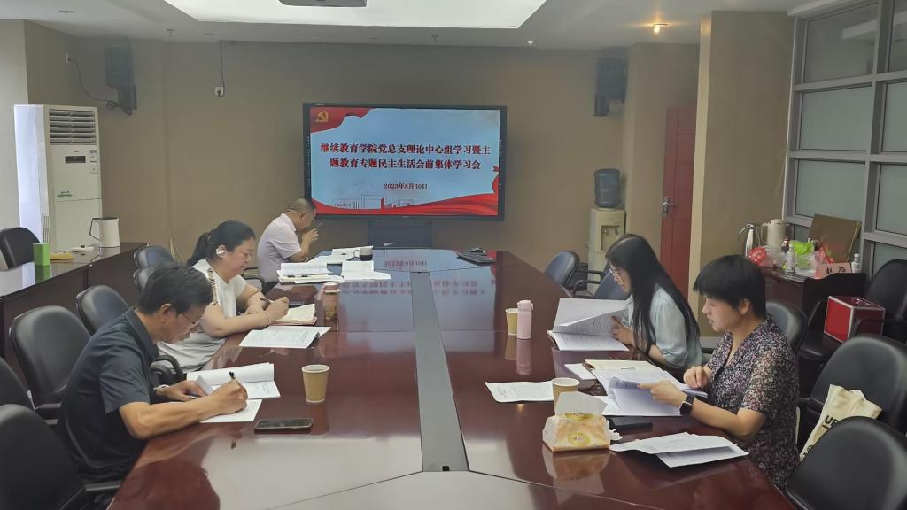 为进一步统一思想、深化认识,高质量开好学习贯彻习近平新时代中国特色社会主义思想主题教育专题民主生活会,8月30日,2138cn太阳集团古天乐组织召开党总支理论中心组学习暨主题教育专题民主生活会前集体学习会,会议由党总支副书记陆嘉主持,院长杜朝辉及党总支委员、教工支部委员参加了学习。
